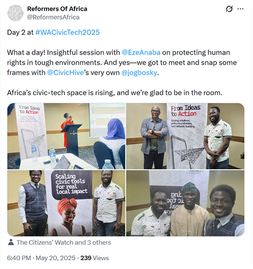 Yes. Following the success of our 2025 edition, which convened over 300+ physical and 492 virtual participants from seven West African nations and launched the West Africa CivicTech Network. This year's event is integrated with the CivicTech Fellowship.
